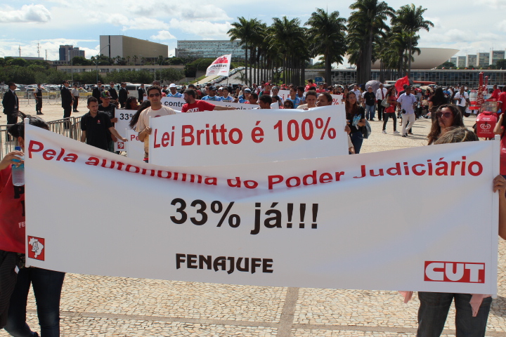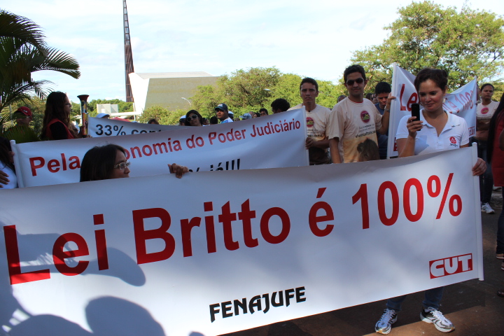 Ainda durante o ato, os coordenadores Zé Oliveira, Ramiro López, Saulo Arcangeli, Antônio Melquíades (Melqui) e Cledo Vieira e o diretor do Sindjus-DF Jailton Assis, foram recebidos por Britto, no Conselho Nacional de Justiça. Na rápida conversa, os dirigentes reafirmaram a cobrança para que o ministro se empenhe, ainda antes de encerrar a sua gestão, visando a aprovação do PL 4363/12 conforme o previsto no acordo firmado no final de agosto com o governo federal, aumentando, portanto, a GAJ de 50 para 100%. Eles também ressaltaram a importância do STF garantir sua autonomia frente ao Executivo.