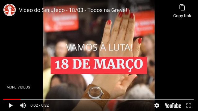 Vídeo do Sinjufego - 18/03 - Todos na Greve! Detalhes Criado: Segunda, 02 Março 2020 08:01 Anterior Próximo